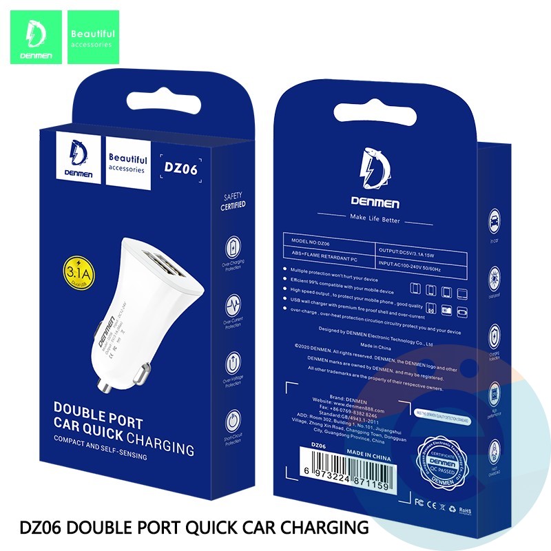 AЗУ Denmen DZ06 DUAL USB 3.1A белое