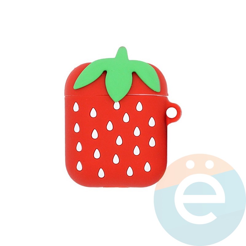 Чехол силиконовый объемный на Apple AirPods 1/2 клубника 42