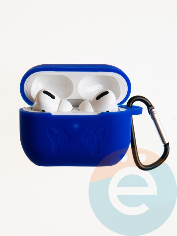 Чехол силиконовый для наушников Apple AirPods Pro 2 с логотипом и карабином синий