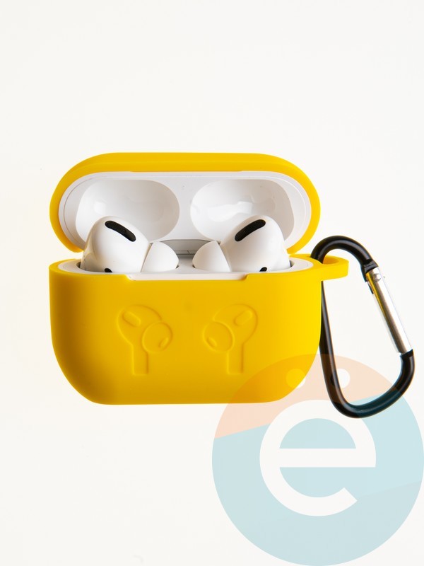 Чехол силиконовый для наушников Apple AirPods Pro 2 с логотипом и карабином желтый
