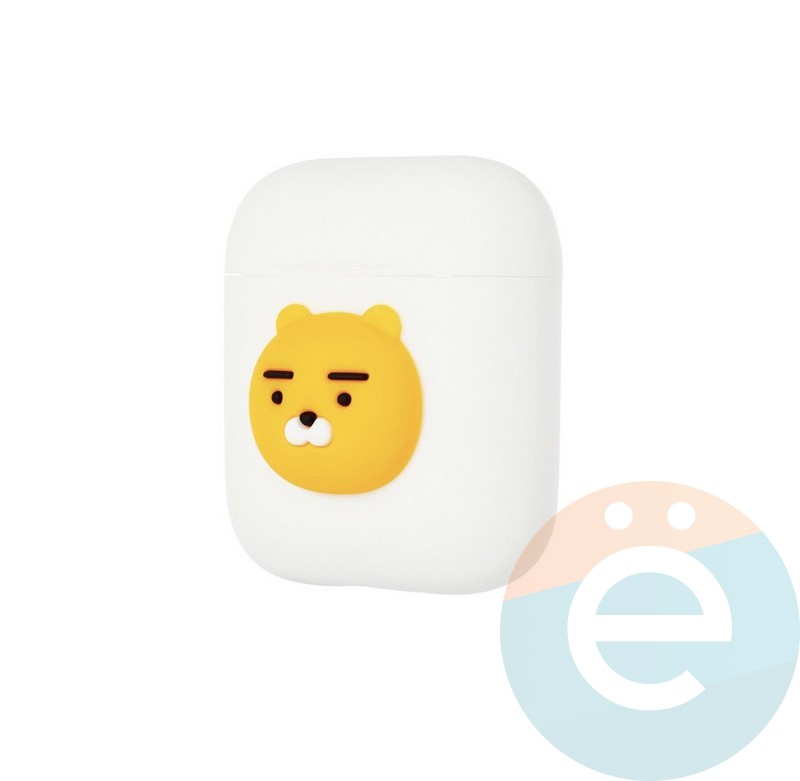 Чехол силиконовый Kakao для наушников Apple AirPods 1/2 медвежонок белый