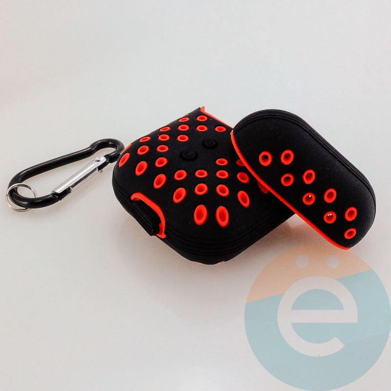 Чехол силиконовый Nike для наушников Apple AirPods 1/2 чёрно-красный 7