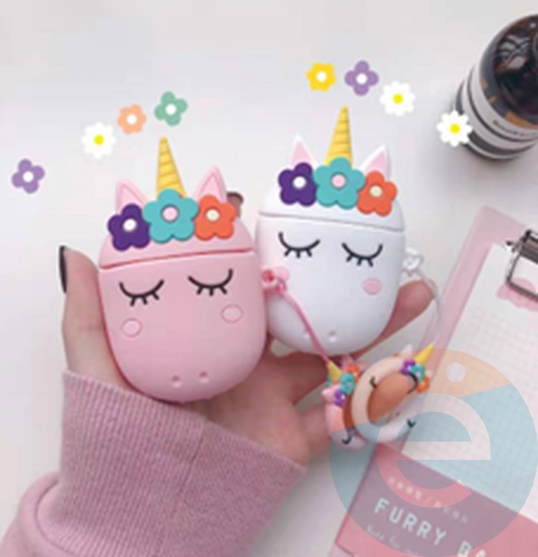 Чехол силиконовый объемный на Apple AirPods Pro 2 единорог белый