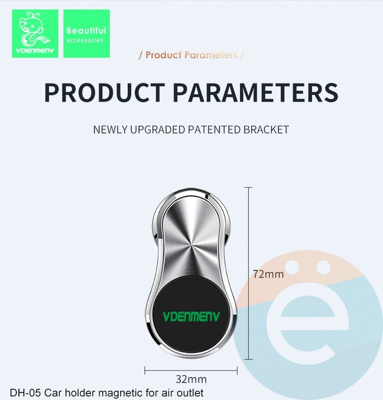 Держатель автомобильный Denmen DH05 в воздуховод серебристый