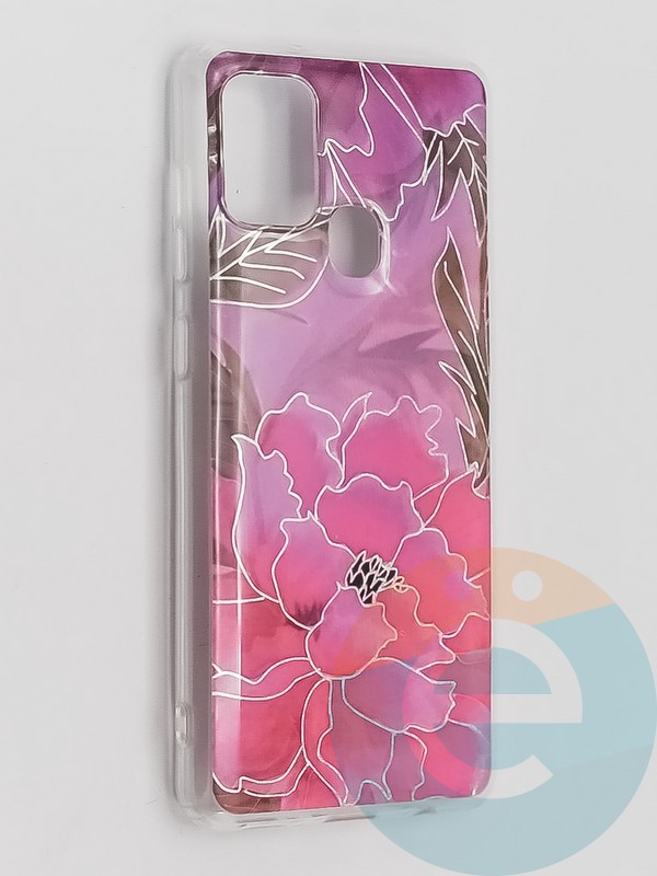 Накладка комбинированная Flowers с силиконовой окантовкой для Samsung Galaxy A21S вид5