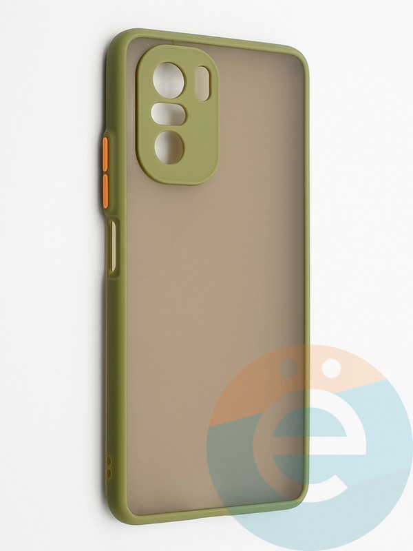 Накладка пластиковая с силиконовой окантовкой с защищенной камерой для Poco F3/Redmi K40 хаки