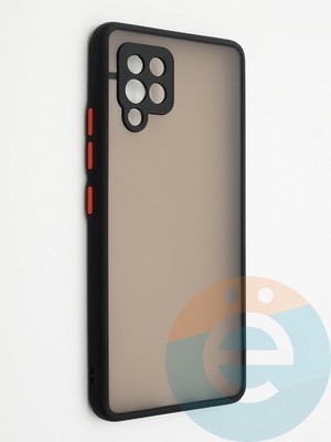 Накладка пластиковая с силиконовой окантовкой с защищенной камерой для Samsung Galaxy A42 черная