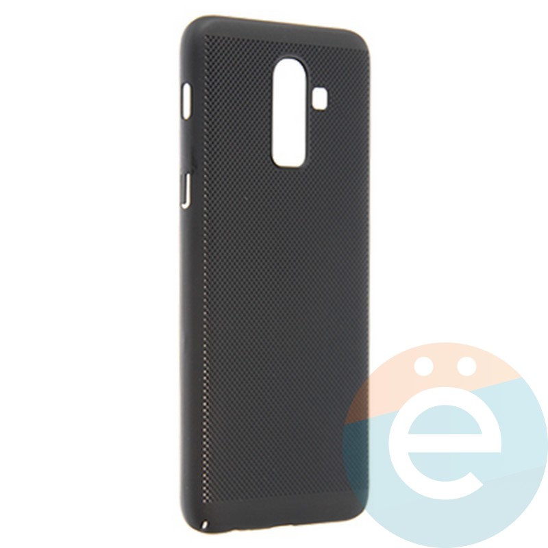 Накладка пластиковая перфорированная на Samsung Galaxy J8 (2018) черная