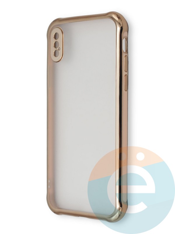 Накладка пластиковая прозрачная с золотистой окантовкой для Apple iPhone X/Xs розовая