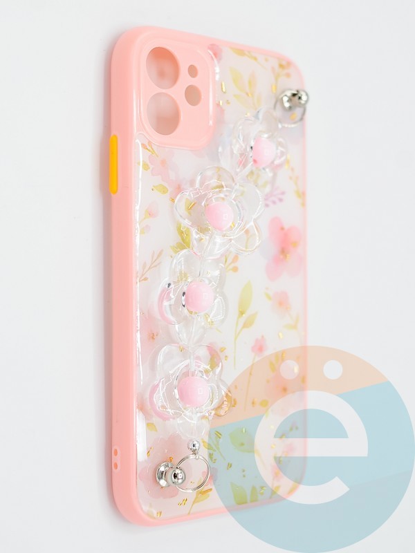Накладка пластиковая с цепочкой для Apple iPhone 11 нежно розовая