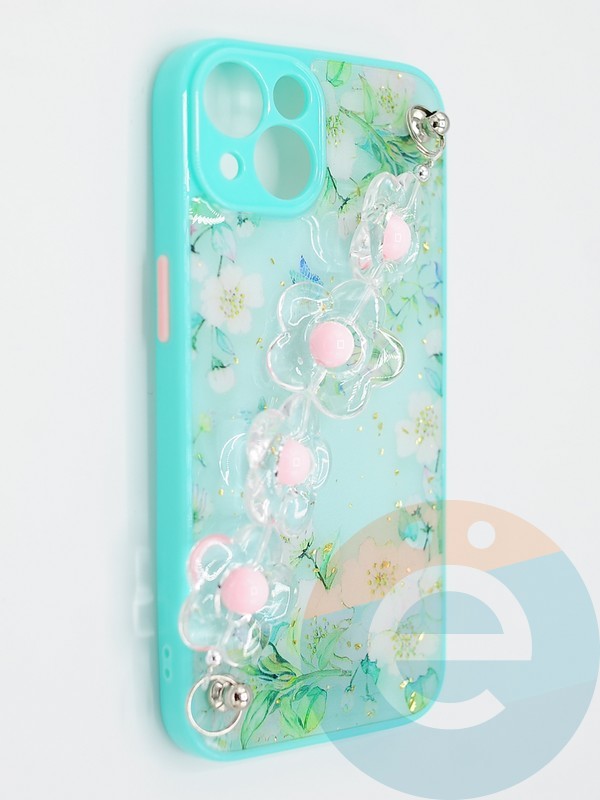 Накладка пластиковая с цепочкой для Apple iPhone 13 бирюзовая