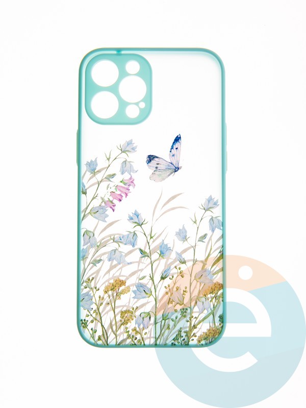 Накладка пластиковая с картинкой для Apple iPhone 12 Pro Max бирюзовая бабочка