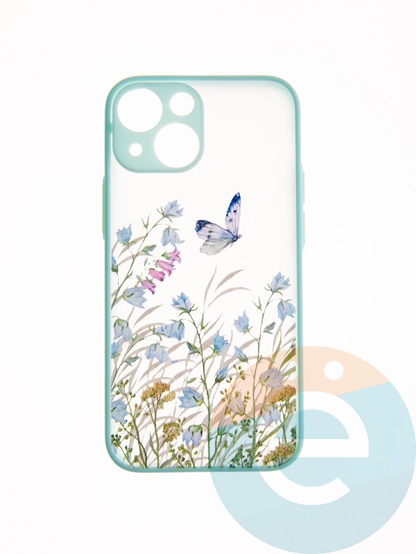 Накладка пластиковая с картинкой для Apple iPhone 13 Mini бирюзовая бабочка