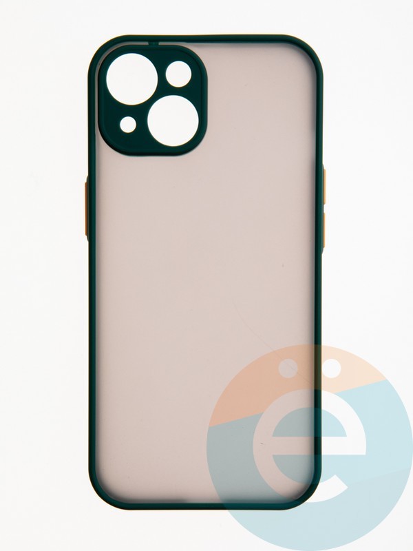 Накладка пластиковая с силиконовой окантовкой с защищенной камерой для iPhone 15 зеленая