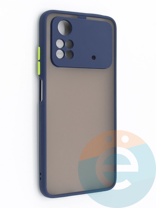 Накладка пластиковая с силиконовой окантовкой с защищенной камерой для Poco M4 Pro 4G синяя