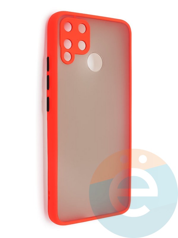 Накладка пластиковая с силиконовой окантовкой с защищенной камерой для Realme C15 красная
