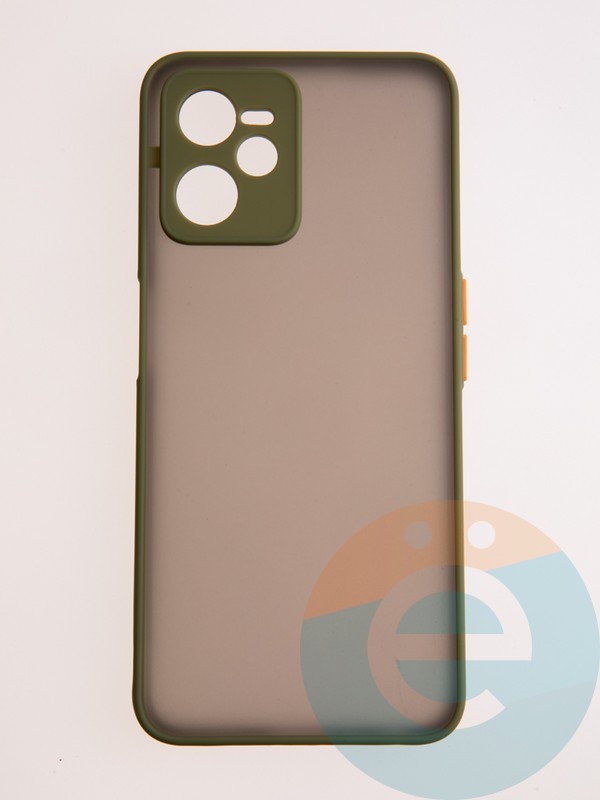 Накладка пластиковая с силиконовой окантовкой с защищенной камерой для Realme C35 хаки