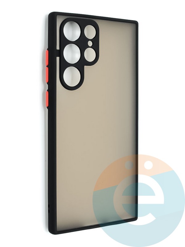 Накладка пластиковая с силиконовой окантовкой с защищенной камерой для Samsung Galaxy S22 Ultra черная