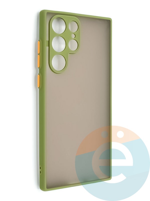 Накладка пластиковая с силиконовой окантовкой с защищенной камерой для Samsung Galaxy S22 Ultra хаки