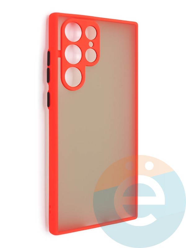 Накладка пластиковая с силиконовой окантовкой с защищенной камерой для Samsung Galaxy S22 Ultra красная