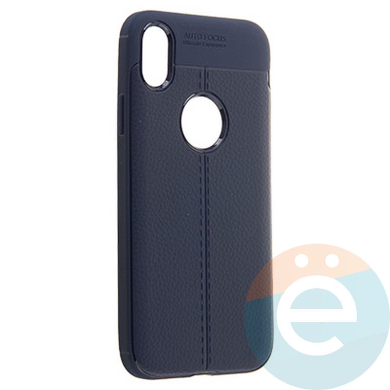 Накладка силиконовая 360 с кожаными вставками на Iphone Xr синяя