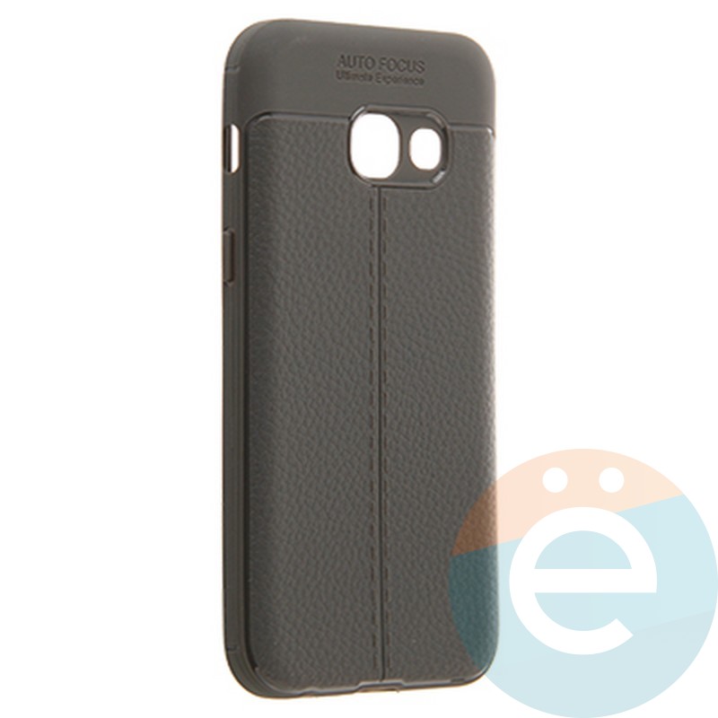 Накладка силиконовая 360 с кожаными вставками на Samsung Galaxy A3 2017 серая