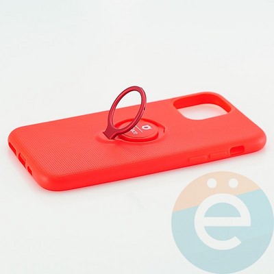 Накладка силиконовая iFace на Apple IPhone 11 Pro с металлической пластиной с кольцом красная