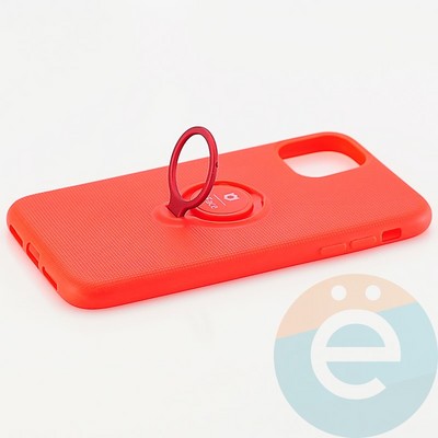 Накладка силиконовая iFace на Apple IPhone 11 с металлической пластиной с кольцом красная