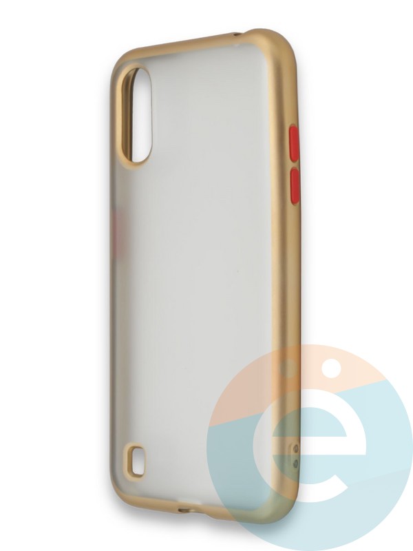 Накладка силиконовая матовая с перламутровой окантовкой для Samsung Galaxy A01 золотистая