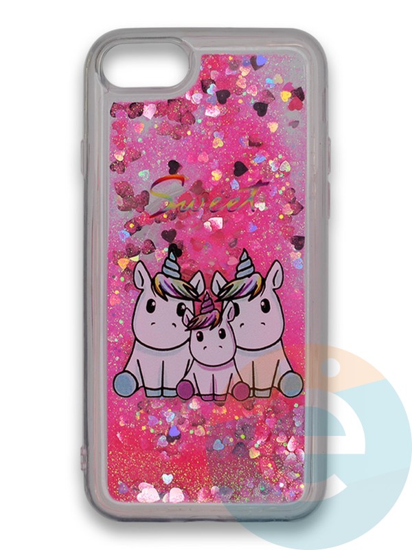 Накладка силиконовая переливашка на Apple Iphone 7/8/SE2 Семья Единорожков