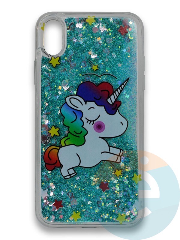 Накладка силиконовая переливашка на Apple Iphone XR Единорожек зеленый