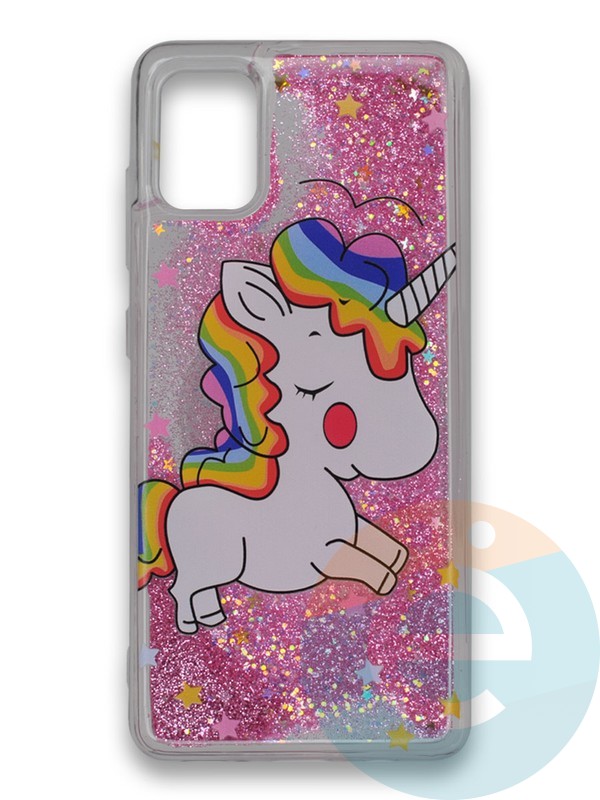 Накладка силиконовая переливашка на Samsung Galaxy A71 Единорожек розовый