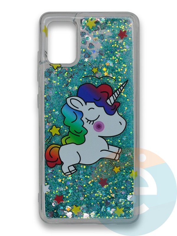 Накладка силиконовая переливашка на Samsung Galaxy A71 Единорожек зеленый