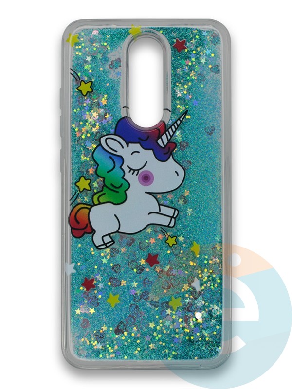 Накладка силиконовая переливашка на Xiaomi REDMI 8/8A Единорожек зеленый
