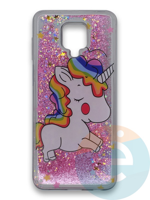 Накладка силиконовая переливашка на Xiaomi REDMI NOTE 9S/9 Pro Единорожек розовый