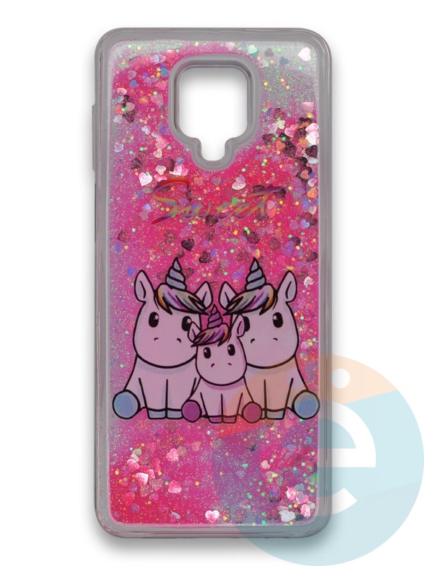 Накладка силиконовая переливашка на Xiaomi REDMI NOTE 9S/9 Pro Семья Единорожков