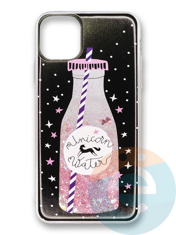 Накладка силиконовая Переливашка с жидкими блёстками на Apple iPhone 11 Pro бутылка лимонада
