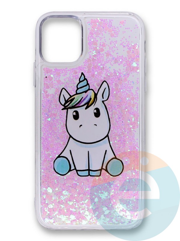Накладка силиконовая Переливашка с жидкими блёстками на Apple iPhone 11 Pro единорожек