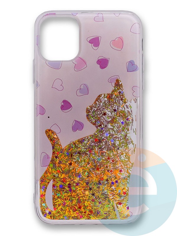 Накладка силиконовая Переливашка с жидкими блёстками на Apple iPhone 11 Pro Max кошка