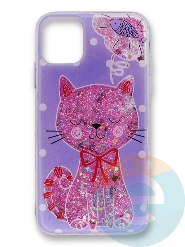 Накладка силиконовая Переливашка с жидкими блёстками на Apple iPhone 11 Pro мечтающий котенок