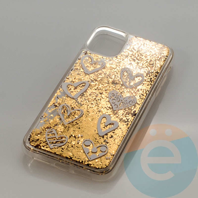 Накладка силиконовая Переливашка с жидкими блёстками на Apple iPhone 11 сердечки
