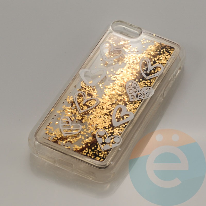 Накладка силиконовая Переливашка с жидкими блёстками на Apple iPhone 5/5s/SE сердечки
