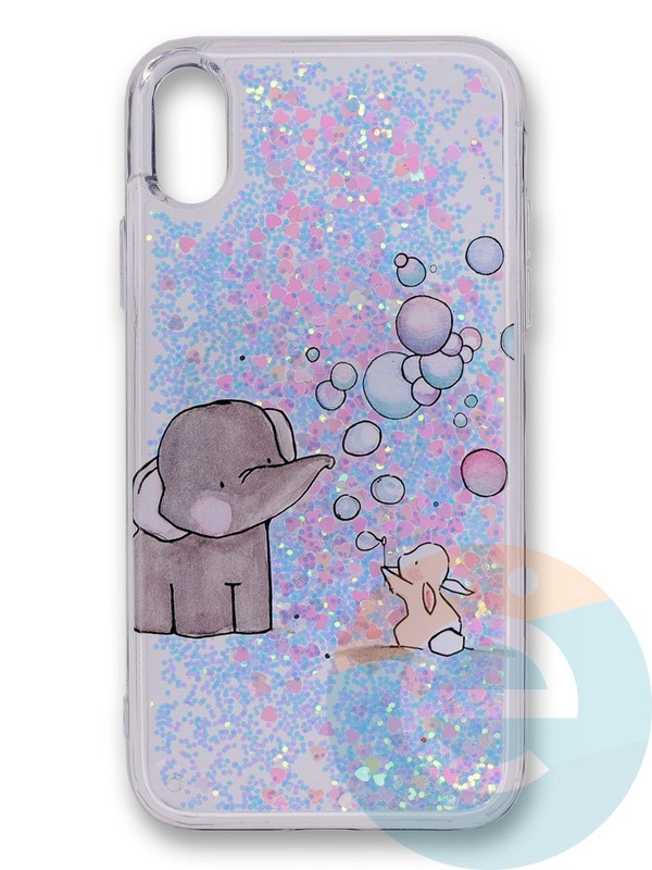 Накладка силиконовая Переливашка с жидкими блёстками на Apple iPhone X/Xs играющий слоненок