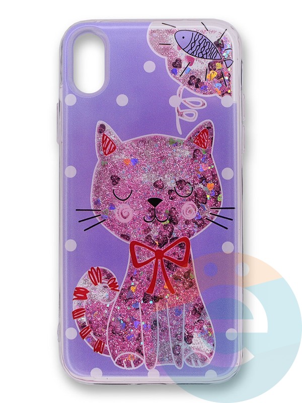 Накладка силиконовая Переливашка с жидкими блёстками на Apple iPhone X/Xs мечтающий котенок