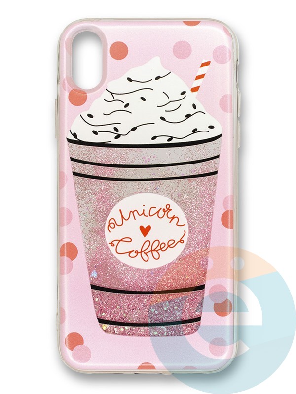 Накладка силиконовая Переливашка с жидкими блёстками на Apple iPhone X/Xs мороженое