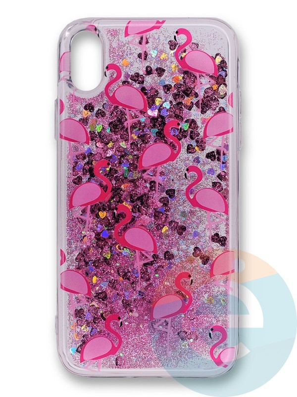Накладка силиконовая Переливашка с жидкими блёстками на Apple iPhone X/Xs розовый фламинго