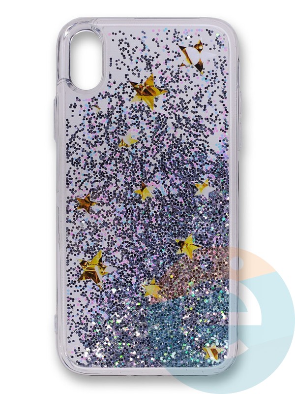 Накладка силиконовая Переливашка с жидкими блёстками на Apple iPhone Xr звезное небо