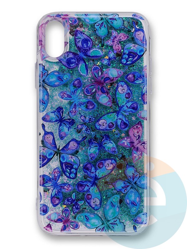 Накладка силиконовая Переливашка с жидкими блёстками на Apple iPhone Xs Max бабочки