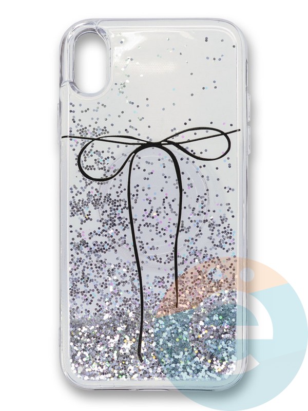 Накладка силиконовая Переливашка с жидкими блёстками на Apple iPhone Xs Max бантик