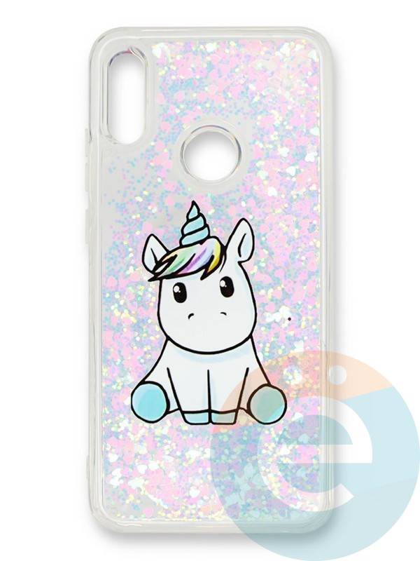 Накладка силиконовая Переливашка с жидкими блёстками на Huawei Y6 2019/ Honor 8A единорожек